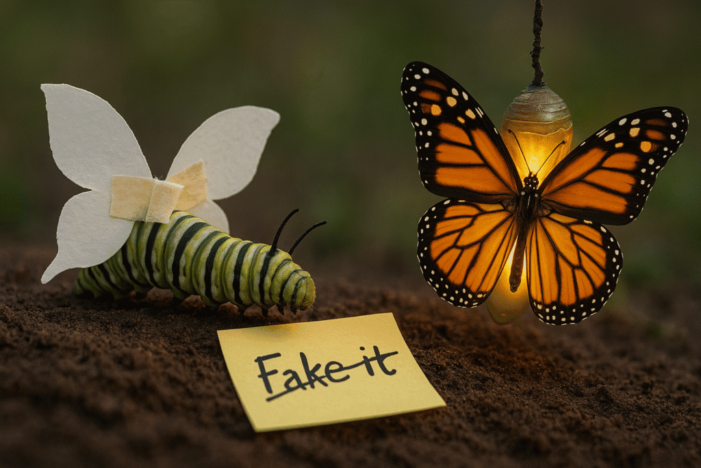 Cette phrase que j’ai croisée sur les réseaux sociaux, « tu ne peux pas coller des ailes sur une chenille et appeler ça un papillon. Le changement doit venir de l’intérieur », nous propose une jolie métaphore pour illustrer le travail thérapeutique il me semble.